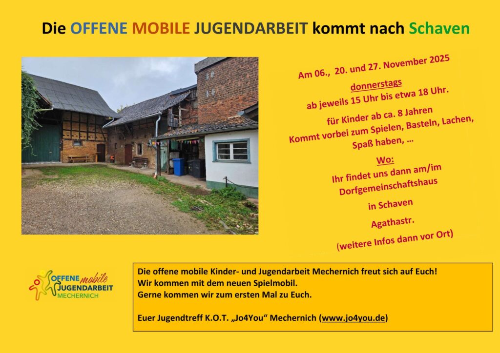 Wir freuen uns darauf das das Spielmobil der Offenen Mobilen Jugendarbeit Mechernich zu uns kommt und laden alle Kinder herzlich dazu ein.
